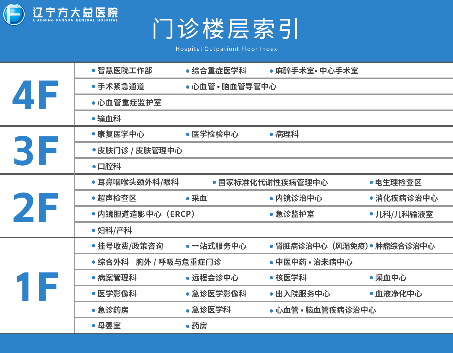 门诊楼层索引